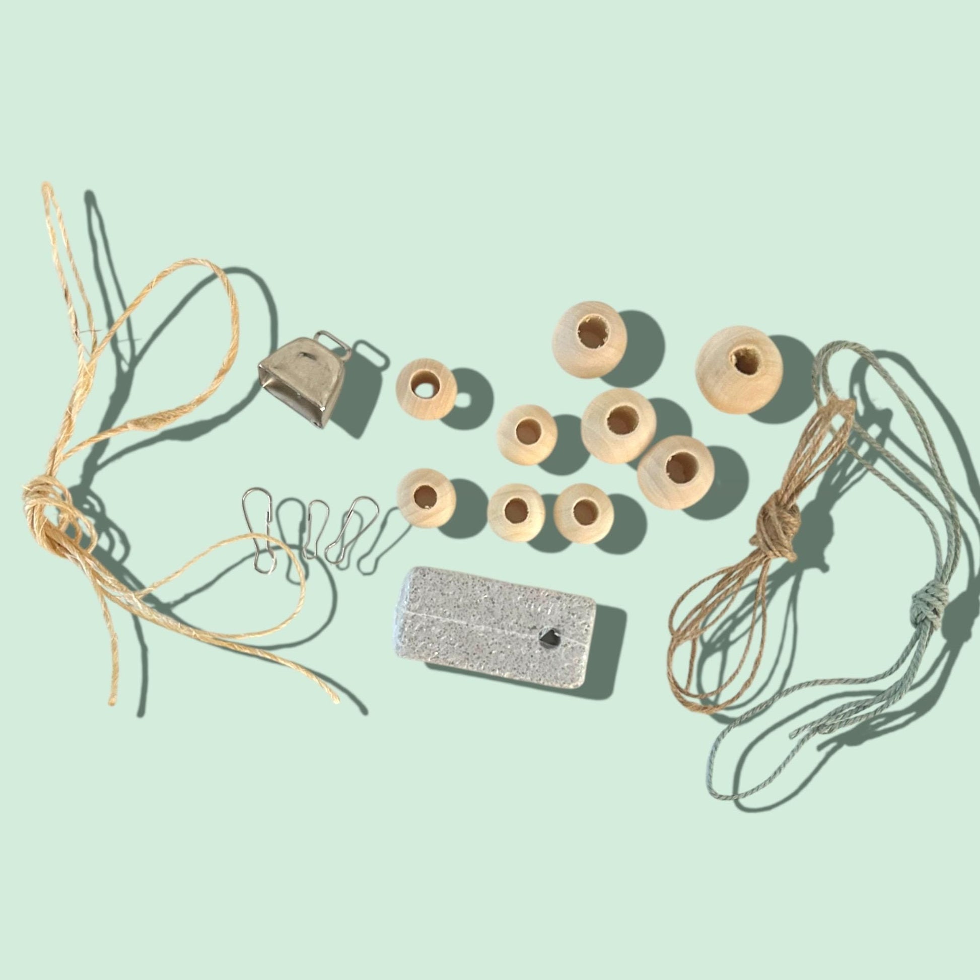 DIY Small Animal Toy Kit: Wood Beads, Bell, Lava Rock
