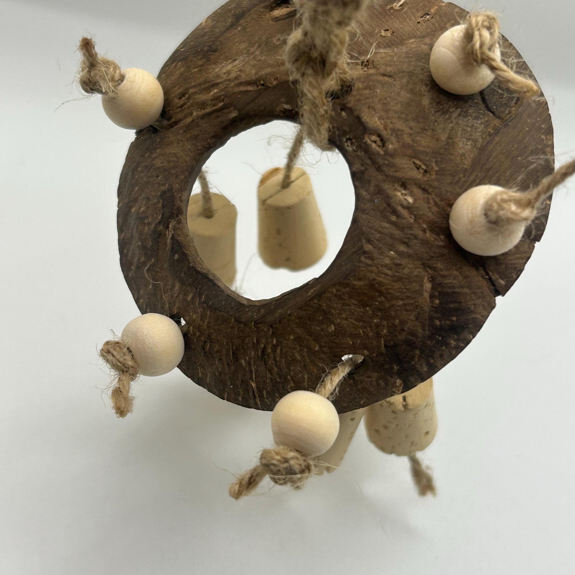 The Corkonut, toy for rats and birds, alike. Natural enrichment with soft and hard chewing. Stings pull and make it extra fun for them to play with.